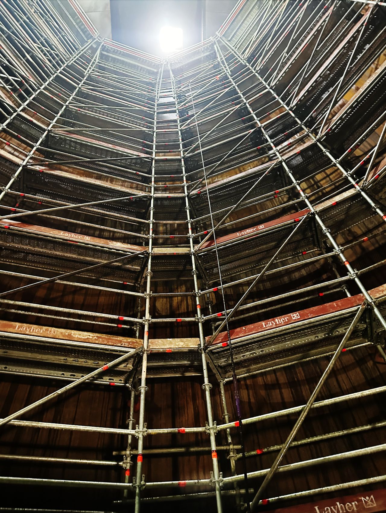 Déployer une équipe de monteurs certifiés CATEC pour concevoir et installer un échafaudage sur mesure à l’intérieur de la cuve, créant un accès sécurisé et optimisé pour les opérateurs de nettoyage.